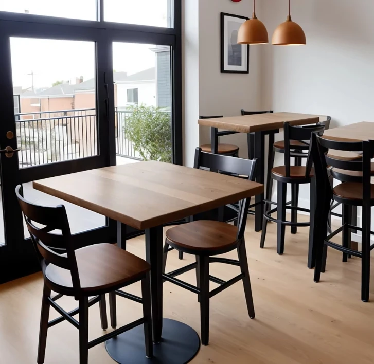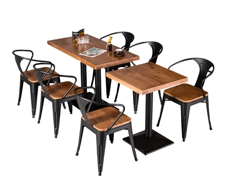 Modern Industrial Style Coffee Shop Fast Food square Cafe Commercial Wood Restaurant Furniture Seating Table and Chair Set